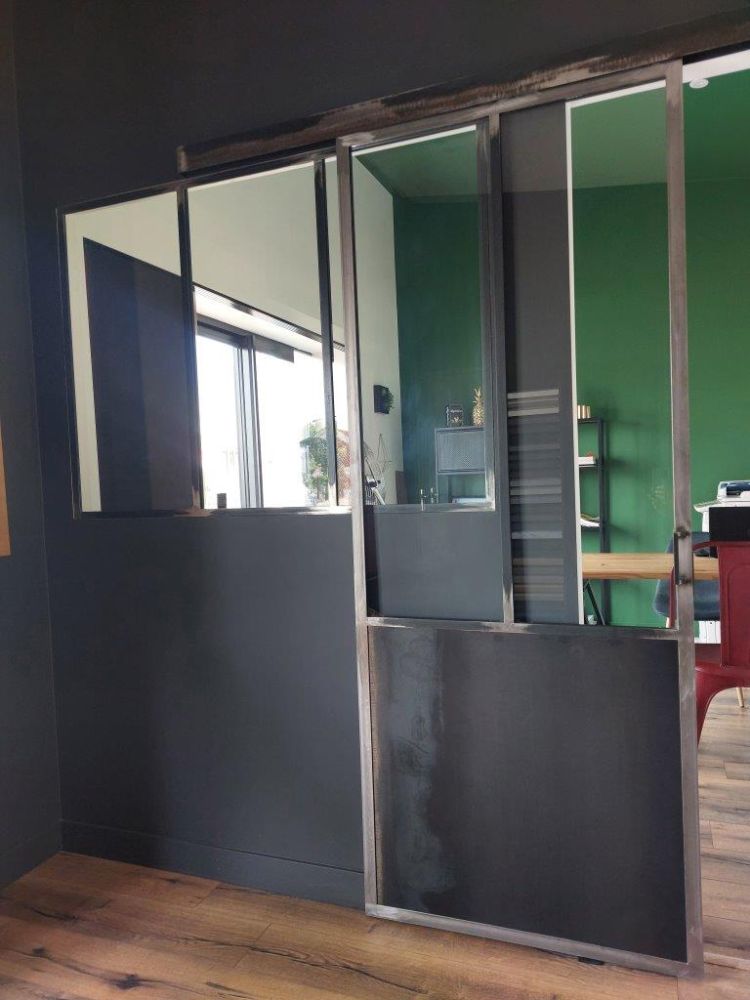La verrière est fixe, ouvrante ou coulissante et on la trouve dans la cuisine, salle de bain et pièce de vie. Elle sert de cloison, de porte et parfois juste de protection. Elle est pour la plupart du temps composée de plusieurs vitrages avec des traverses verticales voire horizontales.