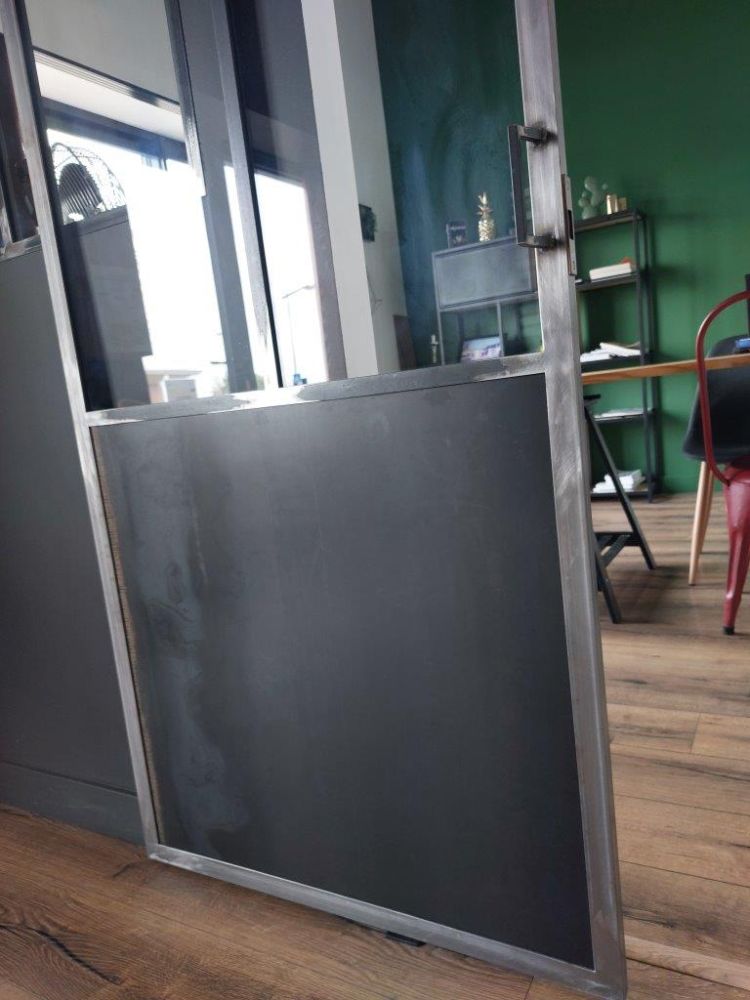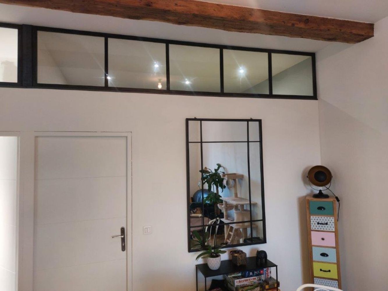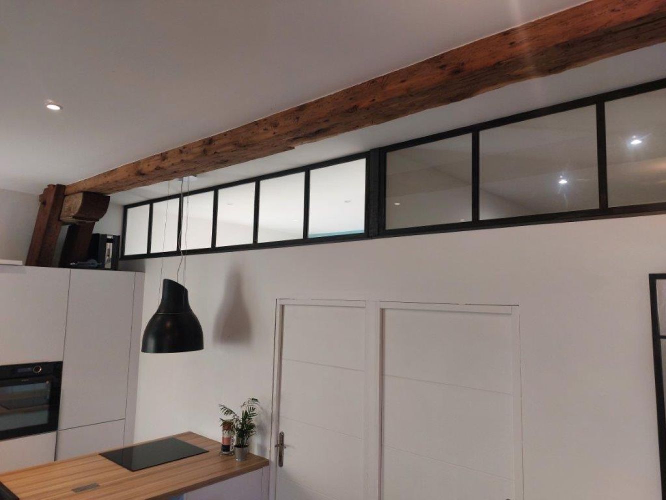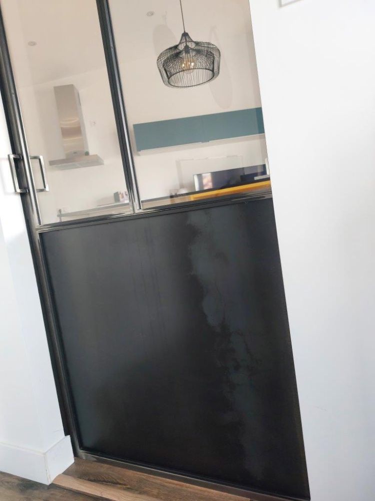 Peu d’ouvertures dans cet appartement, avec une chambre ne disposant pas de fenêtre, ces 2 impostes vitrées en acier permettent à la lumière de circuler dans chacune des pièces ! Les pièces sont devenues lumineuses avec du style.