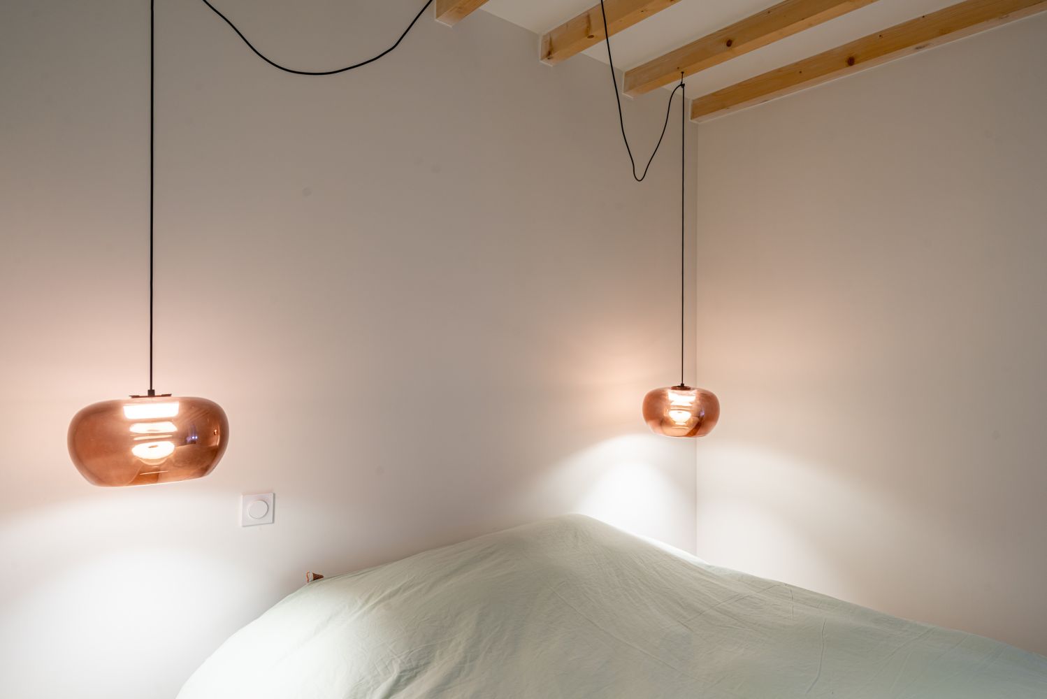 Le plancher des combles a été abaissé de quelques centimètres pour y créer un vrai étage. Ainsi on y loge une chambre et un espace jeu.