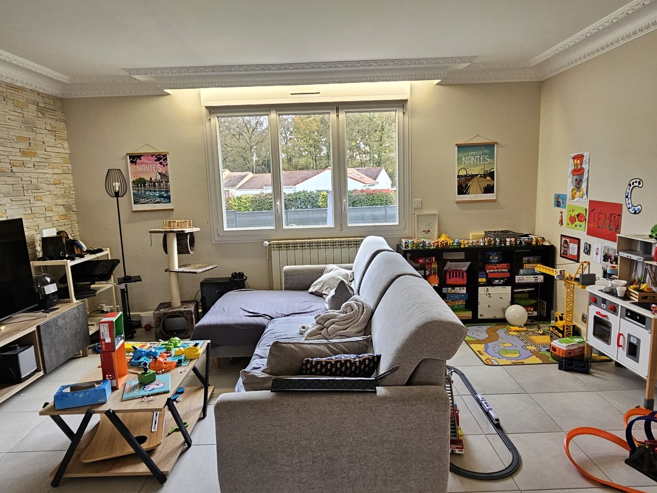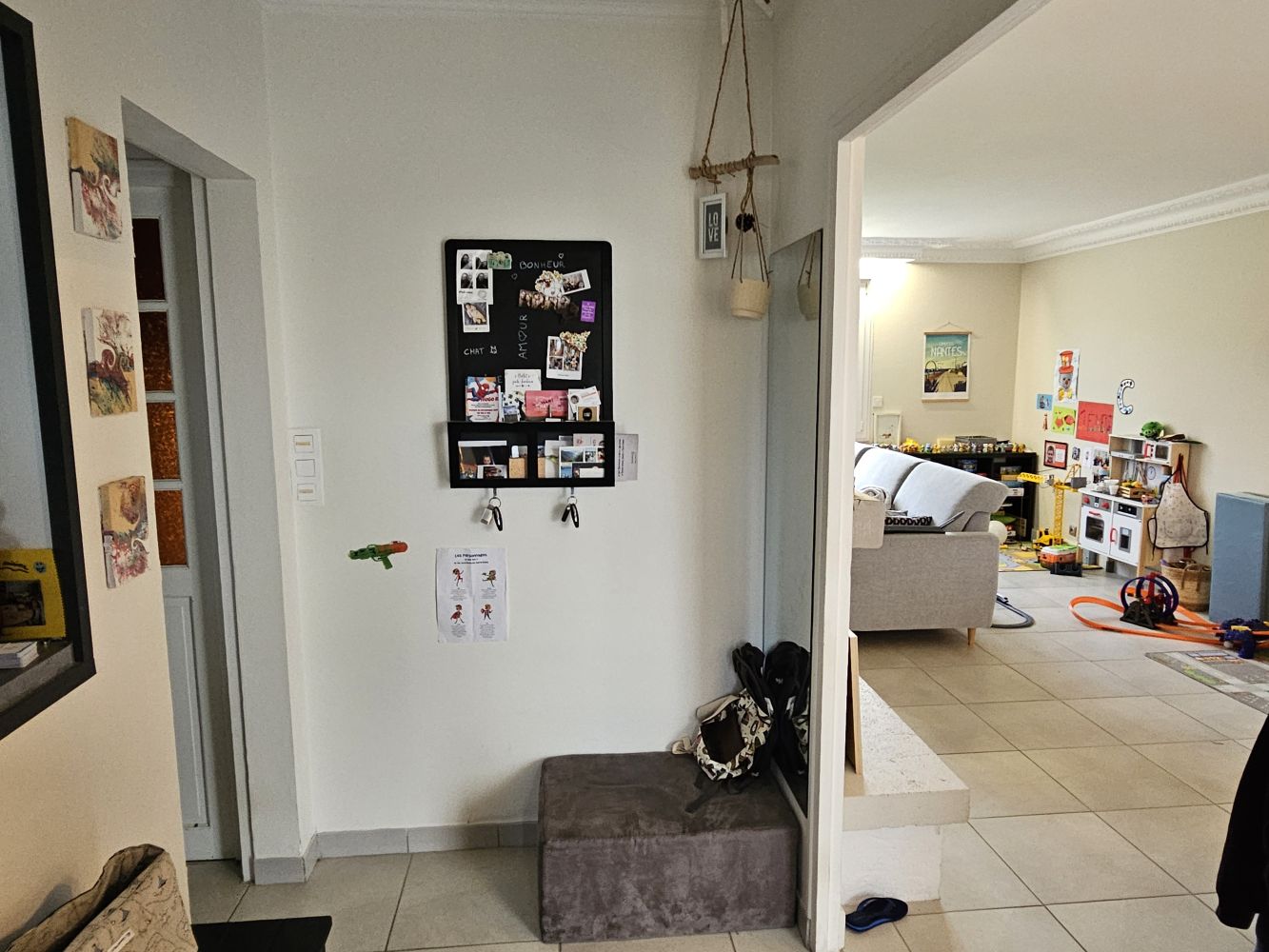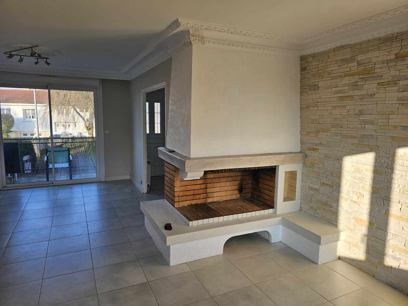 Le résultat est à la hauteur des attentes : une entrée repensée et fonctionnelle, un salon mieux positionné pour tirer parti de la lumière naturelle, un séjour accueillant idéal pour recevoir, et surtout une grande baie vitrée qui ouvre désormais la pièce de vie sur l’extérieur. Cette transformation a redonné de la cohérence et de la modernité à l’ensemble de l’habitation, tout en valorisant la connexion future avec la terrasse à venir.