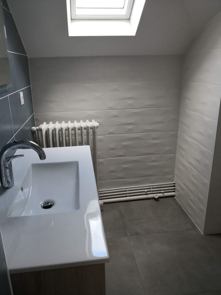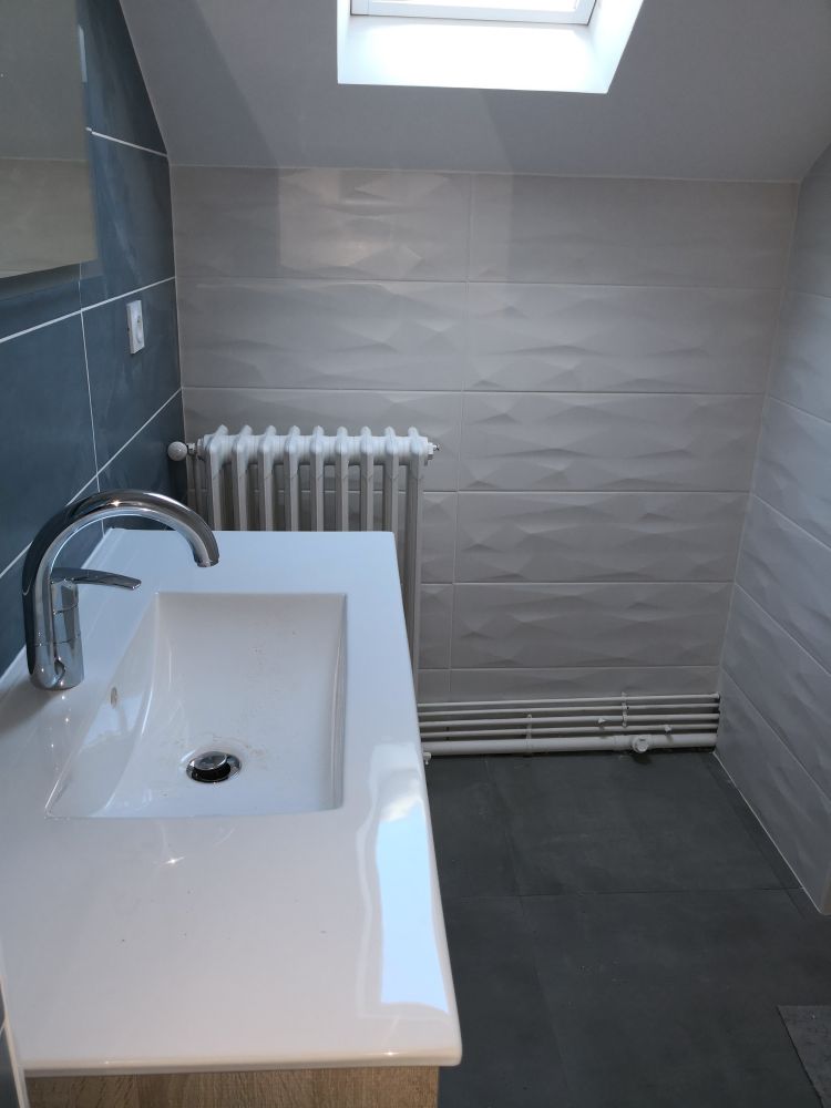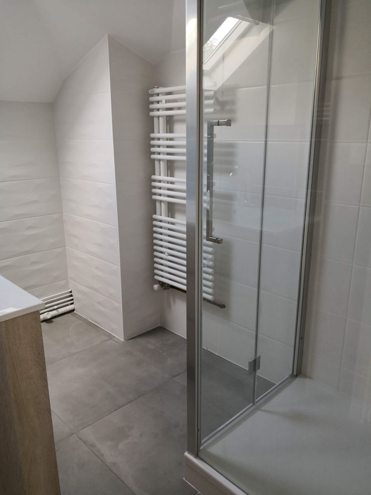 Enfin, comme pour de nombreuses salle de bains, il y a le sèche serviettes et la VMC a été raccordée.