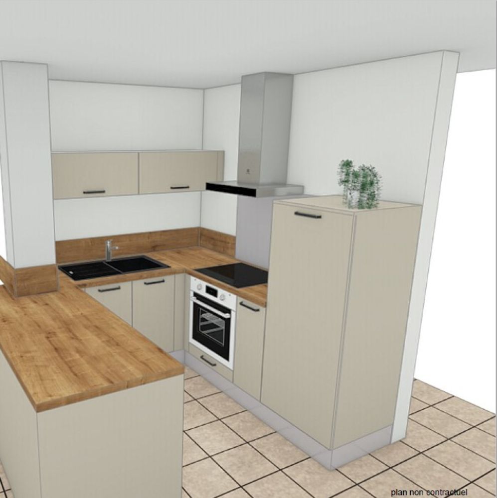 En voici une vue 3D, le rendu final est facile à imaginer et la cliente peut déjà se projeter dans sa future cuisine :