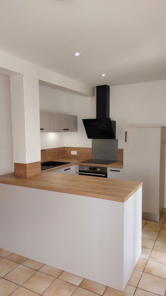 L’élément phare apprécié de tous est son retour de plan de travail doté d’une grande profondeur de 80cm et donnant face à la salle à manger, il est à la fois convivial pour cuisiner et fonctionnel pour le passage des plats.