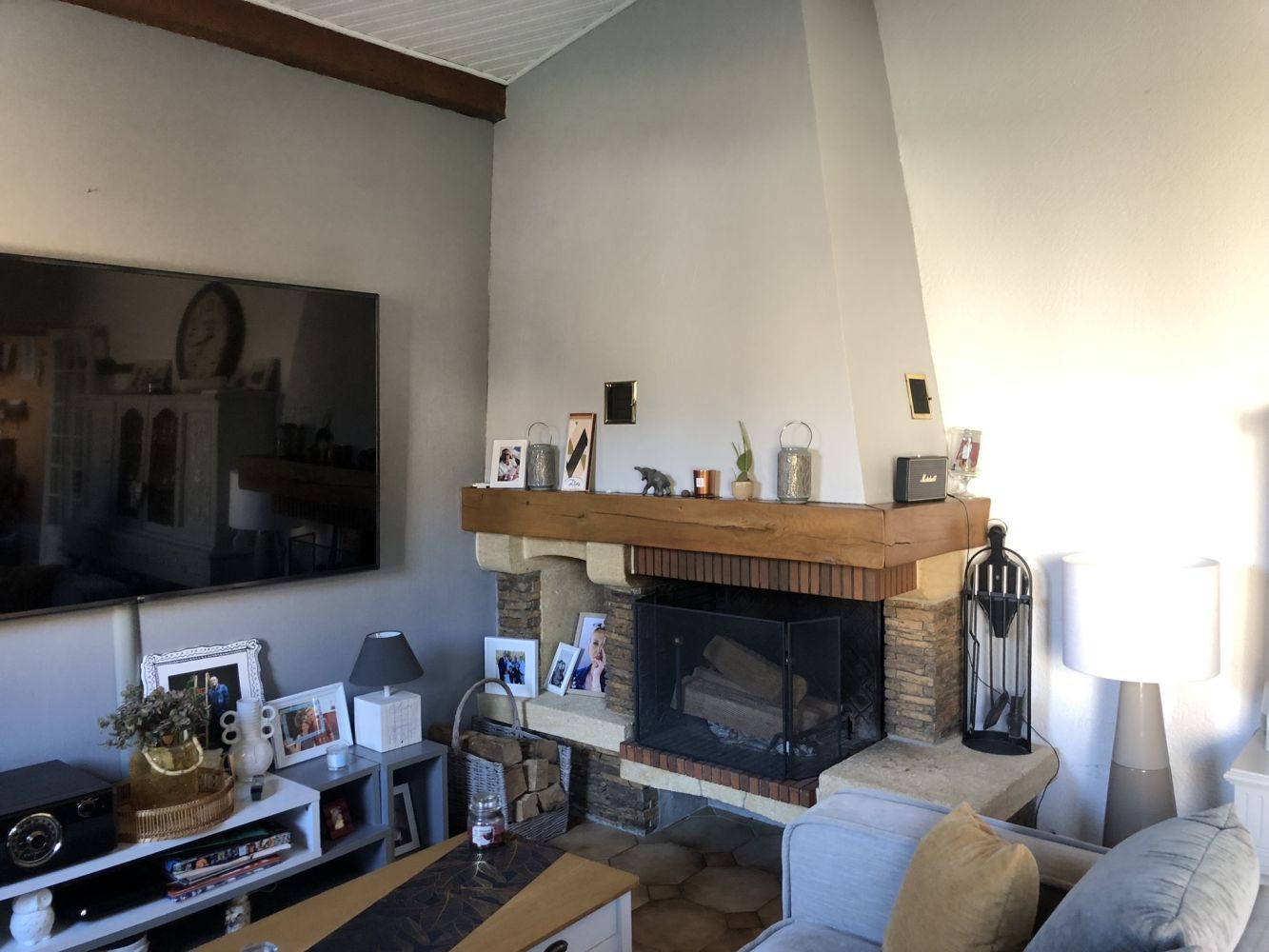 La rénovation a également impliqué une mise à jour complète des systèmes électriques, de plomberie et de chauffage. Pour apporter un confort supplémentaire et une touche chaleureuse, un poêle a été installé, permettant ainsi d’améliorer l’atmosphère de la pièce principale.