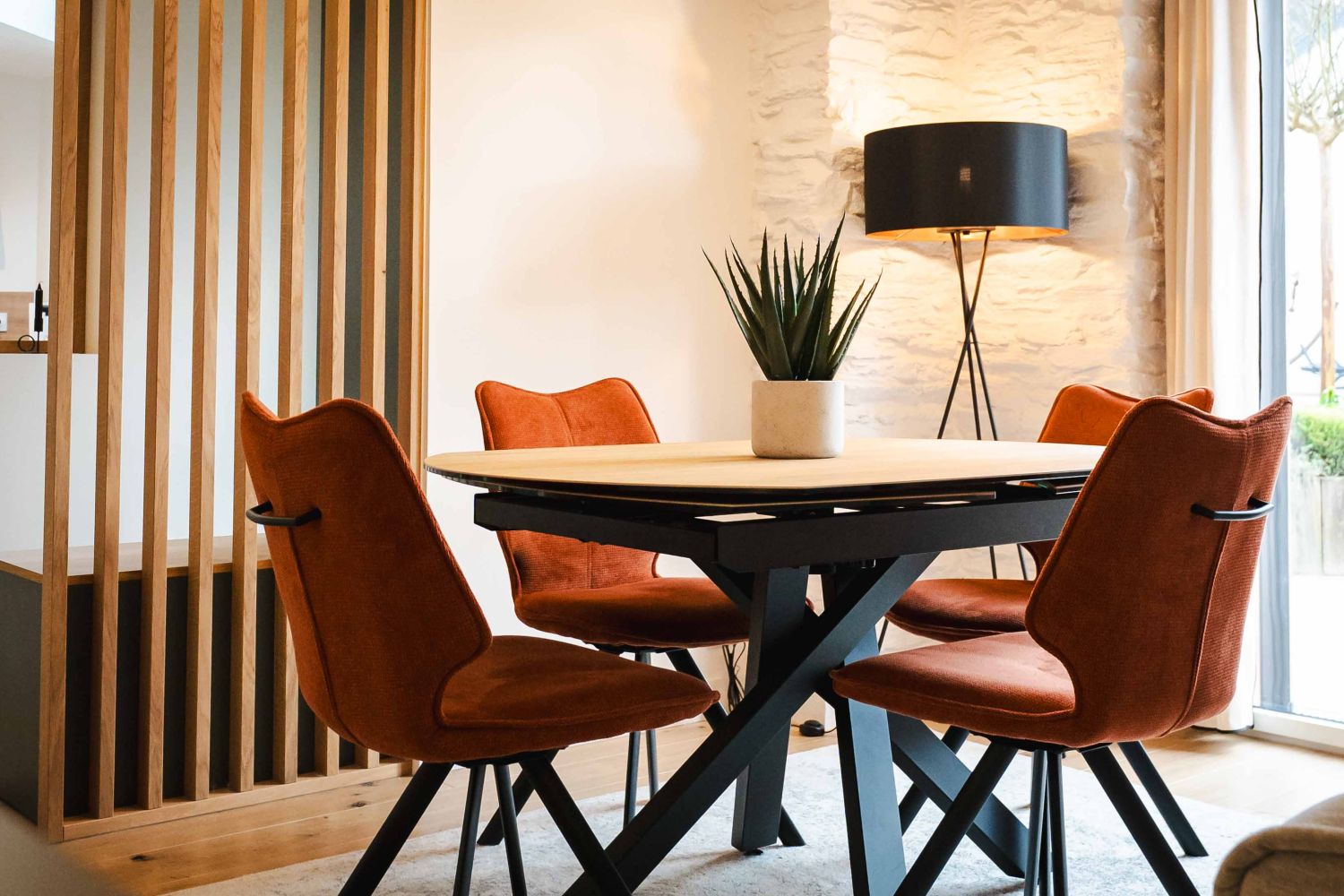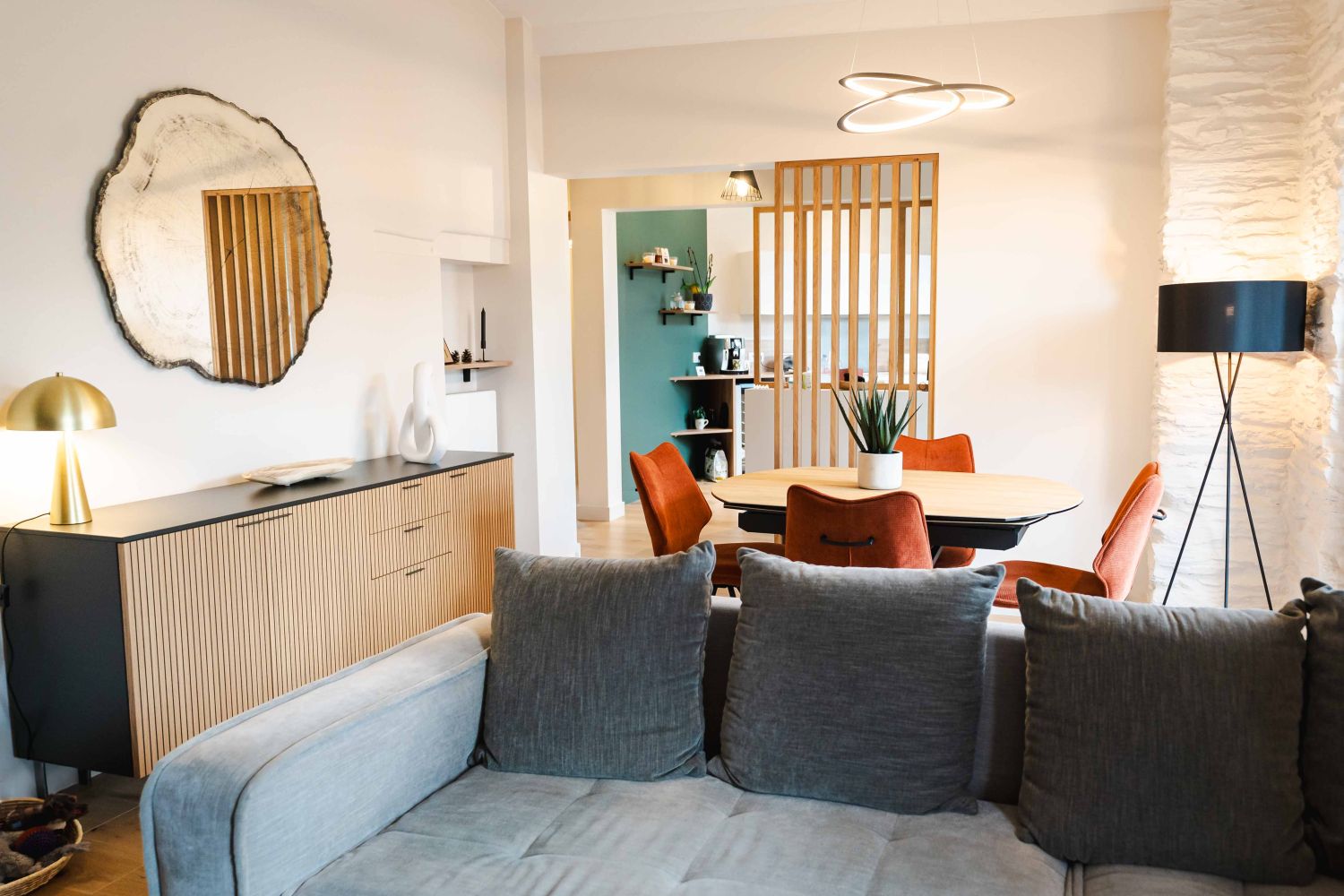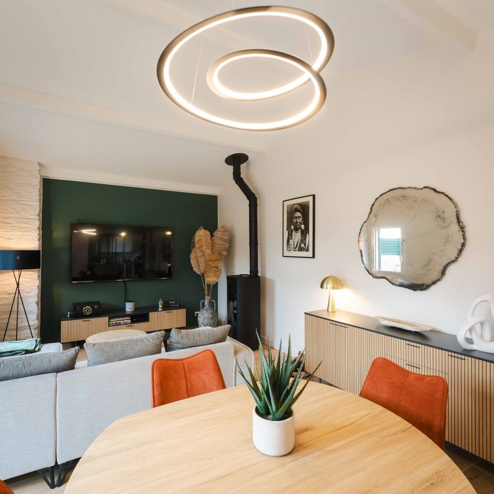 Une fois les travaux achevés, la touche finale a reposé sur l’ameublement et l’éclairage. Chaque meuble et luminaire a été soigneusement sélectionné afin d’assurer une cohérence avec le style défini lors de la phase de conception. L’ameublement a été pensé pour conjuguer esthétisme et praticité, permettant ainsi de créer un intérieur à la fois chaleureux et fonctionnel.