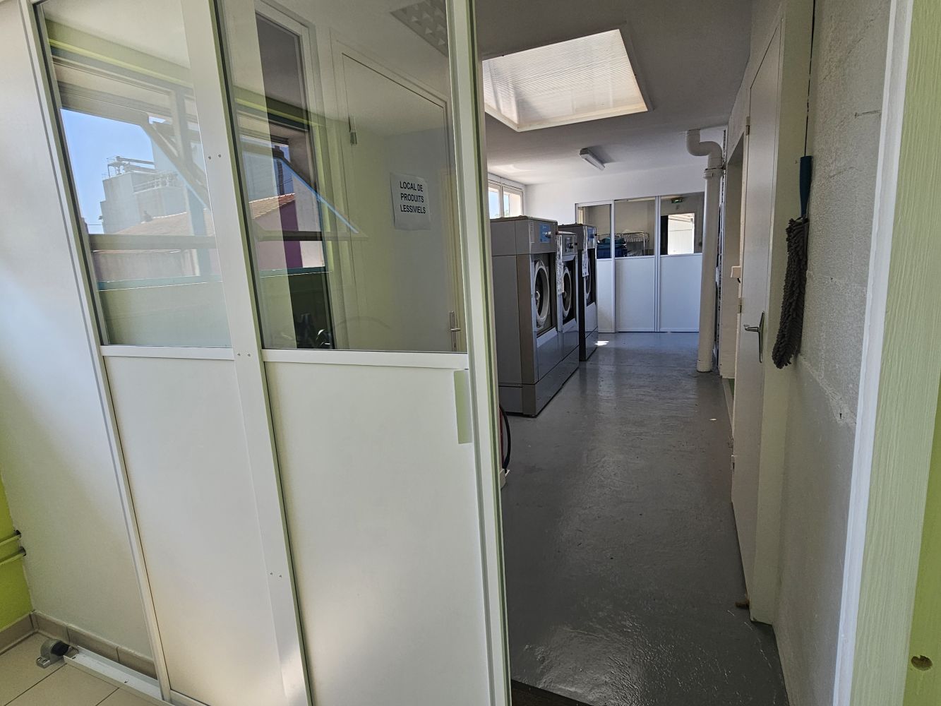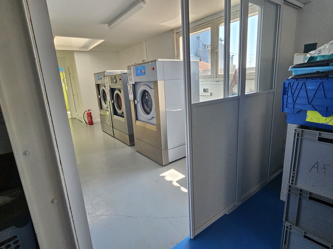 Enfin, la peinture, avec des sols en vinyle de différentes couleurs pour différencier les zones de linge sale et propre, ainsi que la peinture des murs, ajoute une touche finale qui reflète la propreté et le professionnalisme de l'établissement.