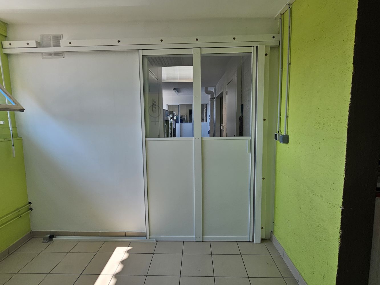 La menuiserie, incluant l'installation de Placo pour de nouveaux espaces, l'ajout de portes vitrées, une verrière, un plafond de dalles suspendues, une isolation adéquate et la création de placards pour les produits, contribue à l'esthétique et à l'organisation du lieu.