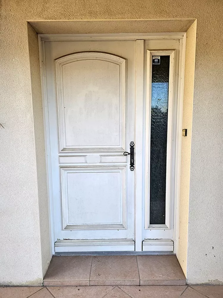 La menuiserie a ensuite débuté, avec le remplacement de la porte d’entrée pour une meilleure performance thermique, puis l’installation d’un poêle à bûches moderne comme nouveau mode de chauffage, et la rénovation complète de deux espaces d’eau : une salle d’eau à l’étage et une salle de bain au rez-de-chaussée. Les réseaux électriques et de plomberie ont été entièrement repris pour répondre aux normes actuelles et améliorer la sécurité du logement.