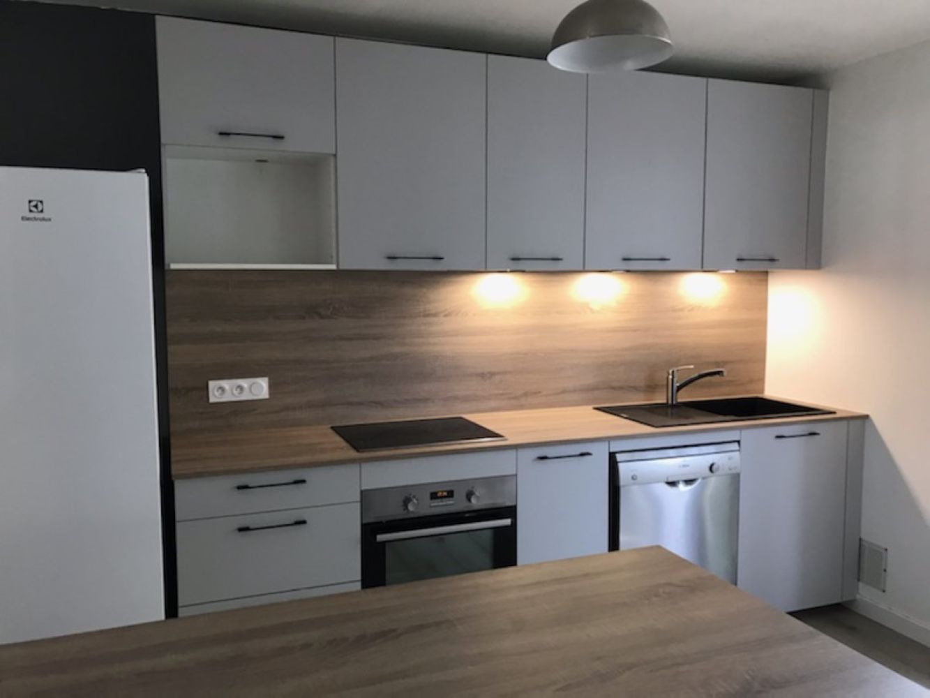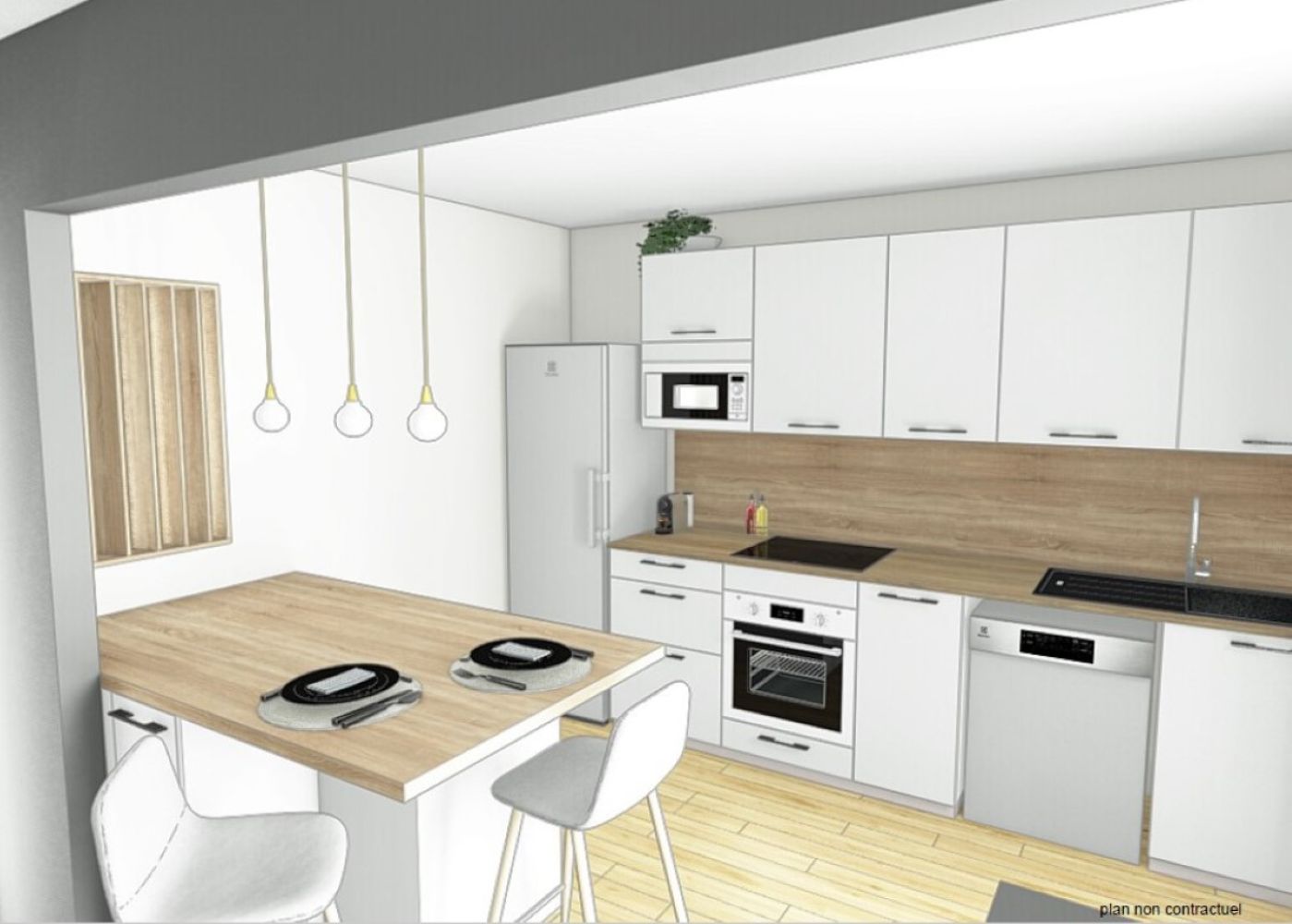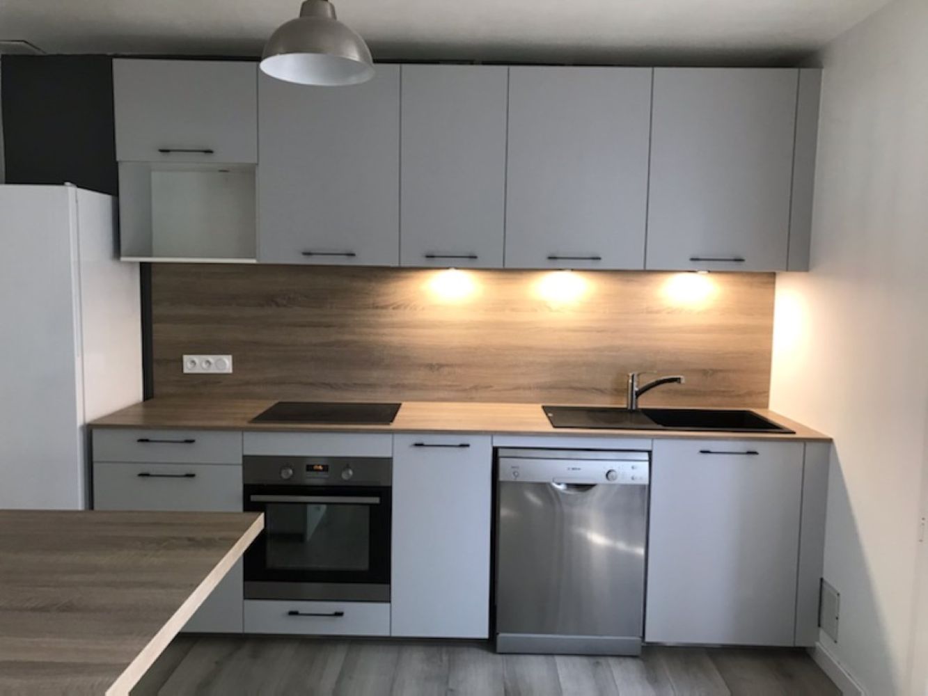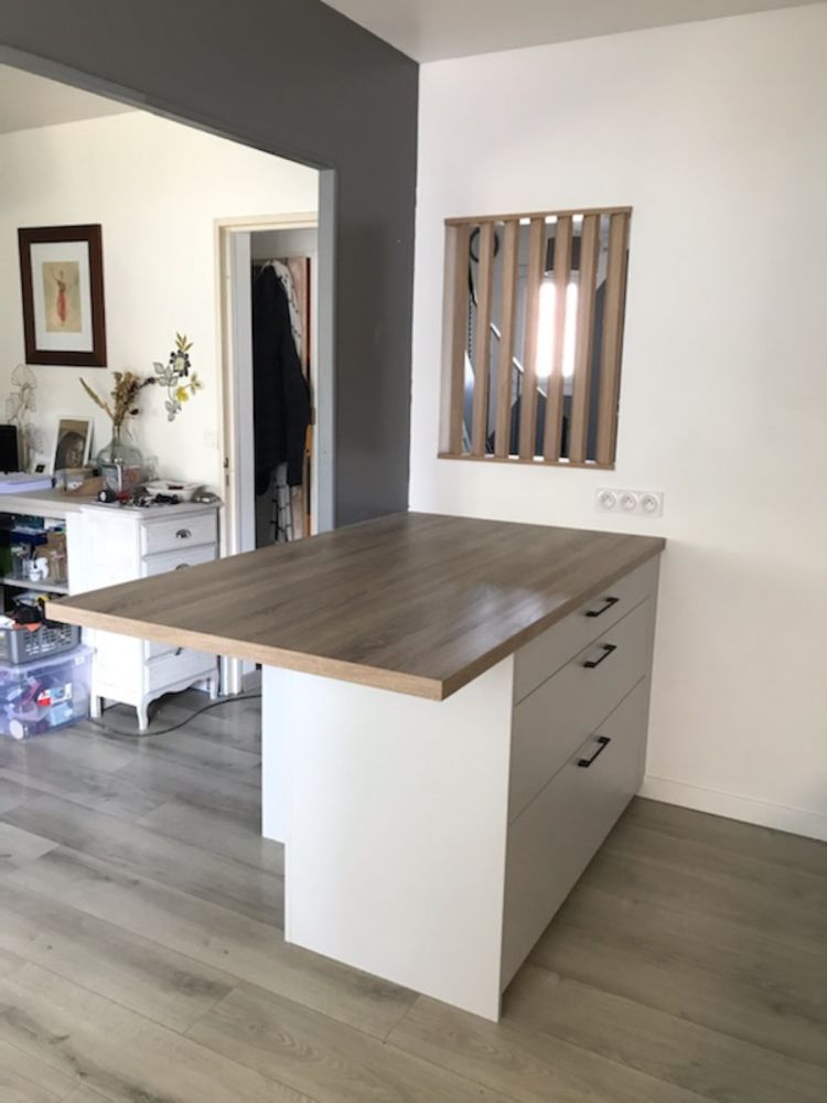 Ici, nos clients voulaient plus de plans de travail, de rangements, un coin repas, retrouver une enfilade de meubles hauts, une cuisine plus moderne et lumineuse... Après une présentation du projet en visuels 3D à notre show-room, quelques modifications sur les accessoires et matériaux, nous avons su répondre à leurs attentes et pu enclencher l’étape suivante : Les travaux !