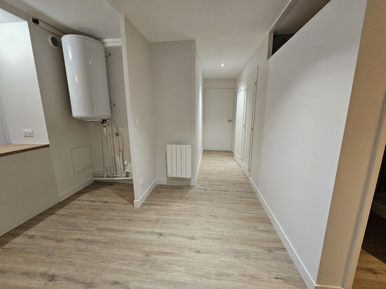 Démolition : Retrait des cloisons et placards existants, ainsi que de l’ancienne salle de bain et cuisine.